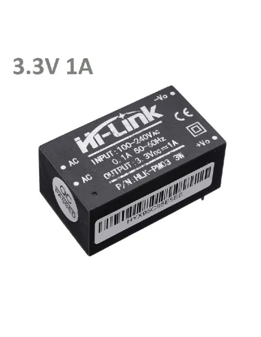 Fuente swichada 3.3VDC/3W ideal para proyectos que necesitan una fuente de alta confiabilidad gastando el menor espacio posible, no te compliques con transformadores y rectificadores, esta fuente autorregula de 100-240VAC a 3.3VDC fijos.