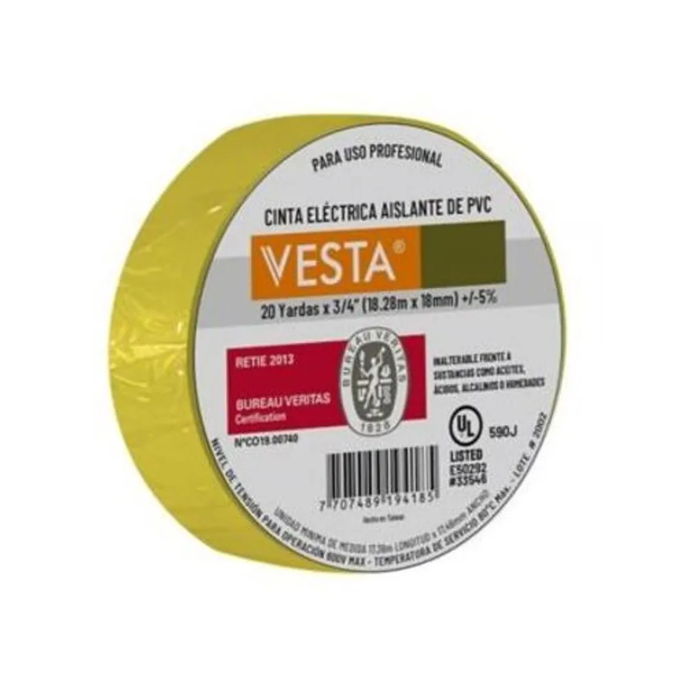Cinta Aislante de Vinilo para Uso General 18 mm x 18 Amarillo