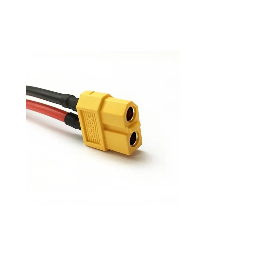 El conector XT60 hembra con cable siliconado de 14AWG (10 cm) es ideal para proyectos de electrónica, robótica y aeromodelismo.