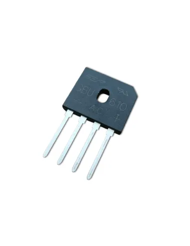 El puente de diodos GBU610 integra cuatro diodos rectificadores en una sola estructura compacta