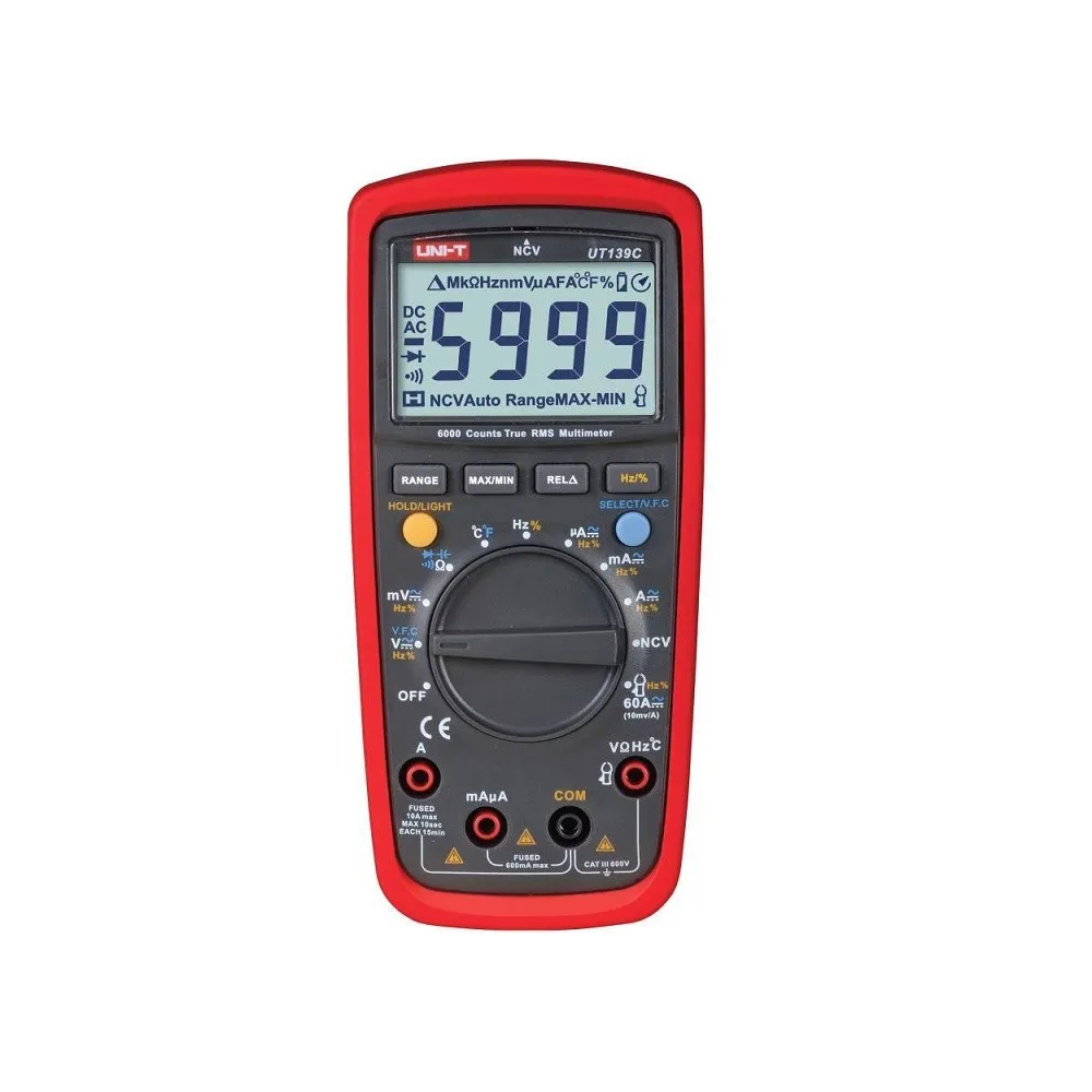 Multímetros digitale serie UT139C nuevo diseño para ofrecer a los usuarios un mejor rendimiento y una mayor calificación de seguridad. Totalmente protección de la sobrecarga, el diseño único hacen que sea nuevo tipo de multímetro con un alto rendimiento / precio y una mejor opción para los electricistas utilizados en el mantenimiento y reparación eléctrica.