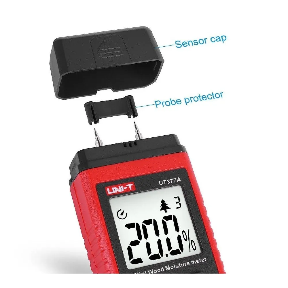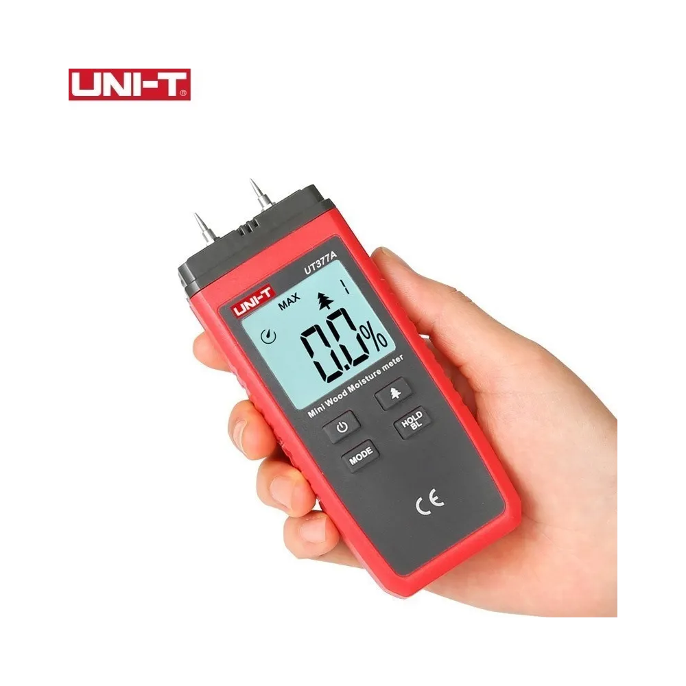 UT377A es un medidor digital diseñado para medir el contenido de humedad de madera, papel, madera contrachapada y otros materiales de madera. Este dispositivo clasifica la madera en cuatro categorías según la densidad del material y aplica un algoritmo de compensación de temperatura para garantizar la precisión de la medición. El diseño en miniatura de UT377A, el bajo consumo de energía y la alta precisión hacen de esta una excelente opción de producto para medir el contenido de humedad de la madera.