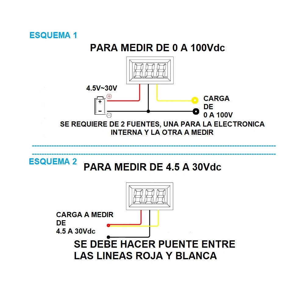 1X VOLTIMETRO DIGITAL 0.56″ COLOR azul 3 CABLES