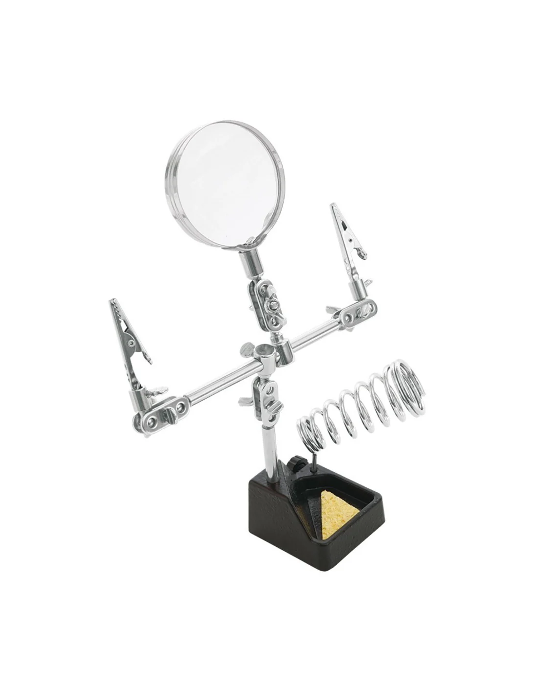 Base de acero fundido pesado y robusto el cual evita el movimiento del trabajo. la lupa mejora el campo de visión para los objetos pequeños.