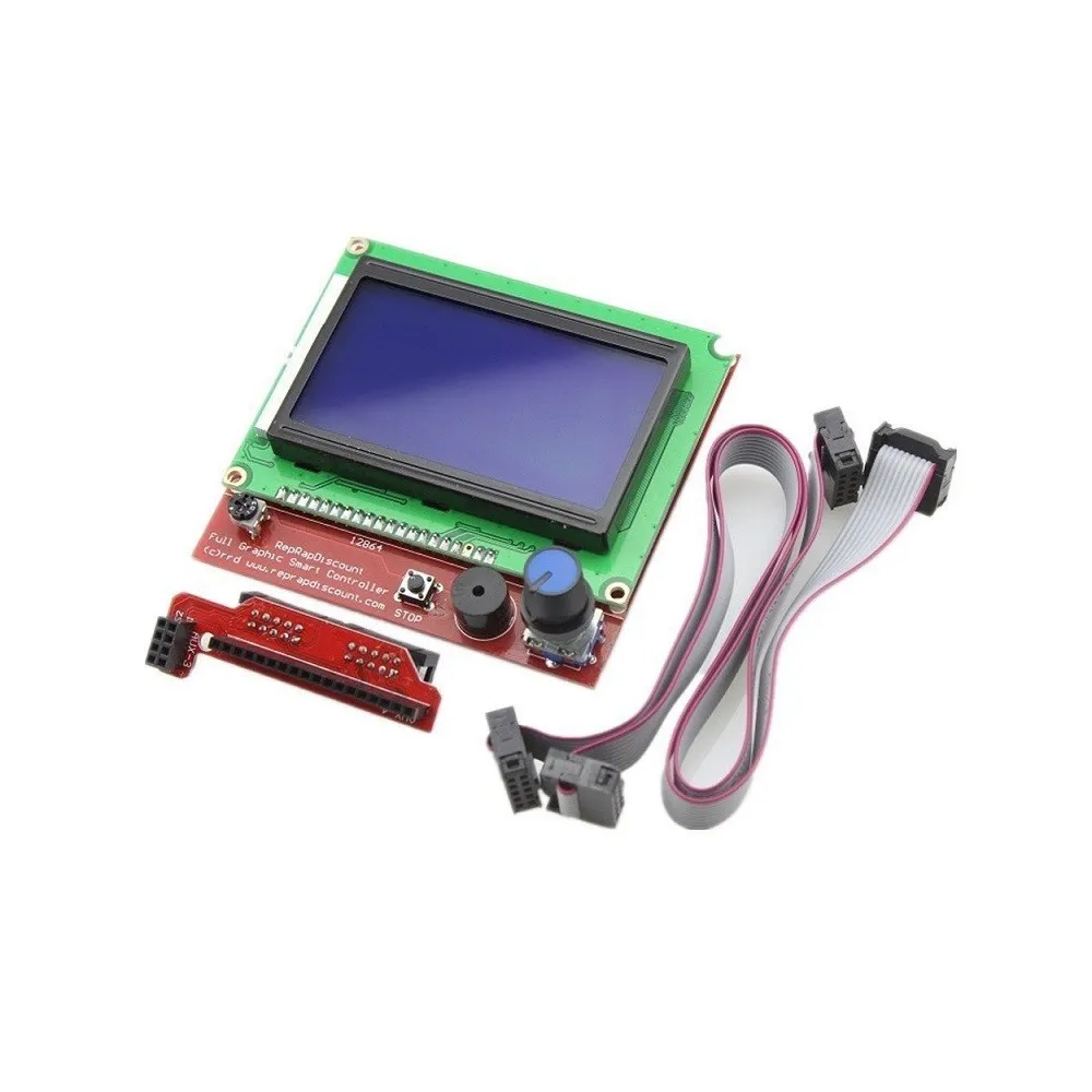 Este controlador gráfico completo inteligente contiene un lector de tarjeta SD, un codificador rotatorio y una pantalla LCD de matriz de 128 x 64 puntos. Puede fácil conectarlo a sus rampas de mesa mediante el "adaptador inteligente" incluido.