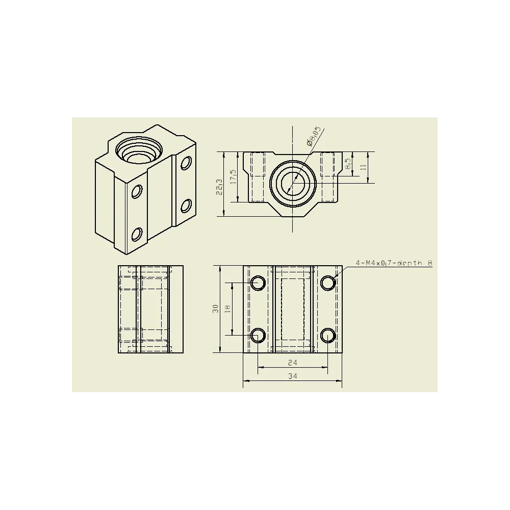 Rodamiento lineal de 8mm con camisa en aluminio duro, para guias de maquinas fresadoras, ruteadora  e impresoras 3D