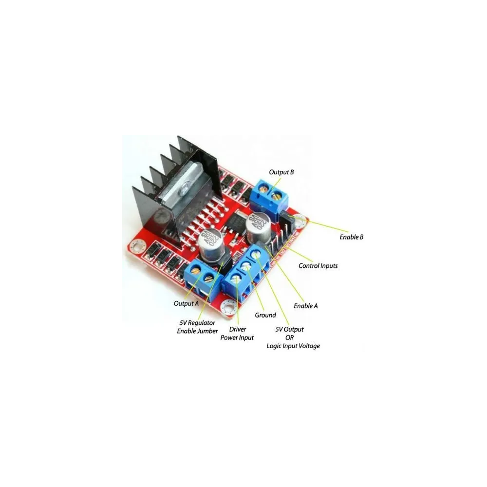 El L298N es un controlador de motor de alto voltaje, alta corriente, doble puente completo, diseñado para aceptar estándares de niveles lógicos TTL y manejar cargas inductivas tales como relés, solenoides, motores DC y de paso.