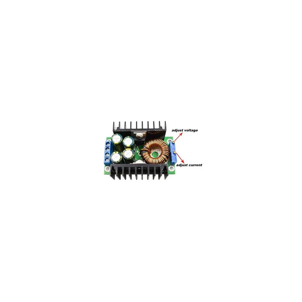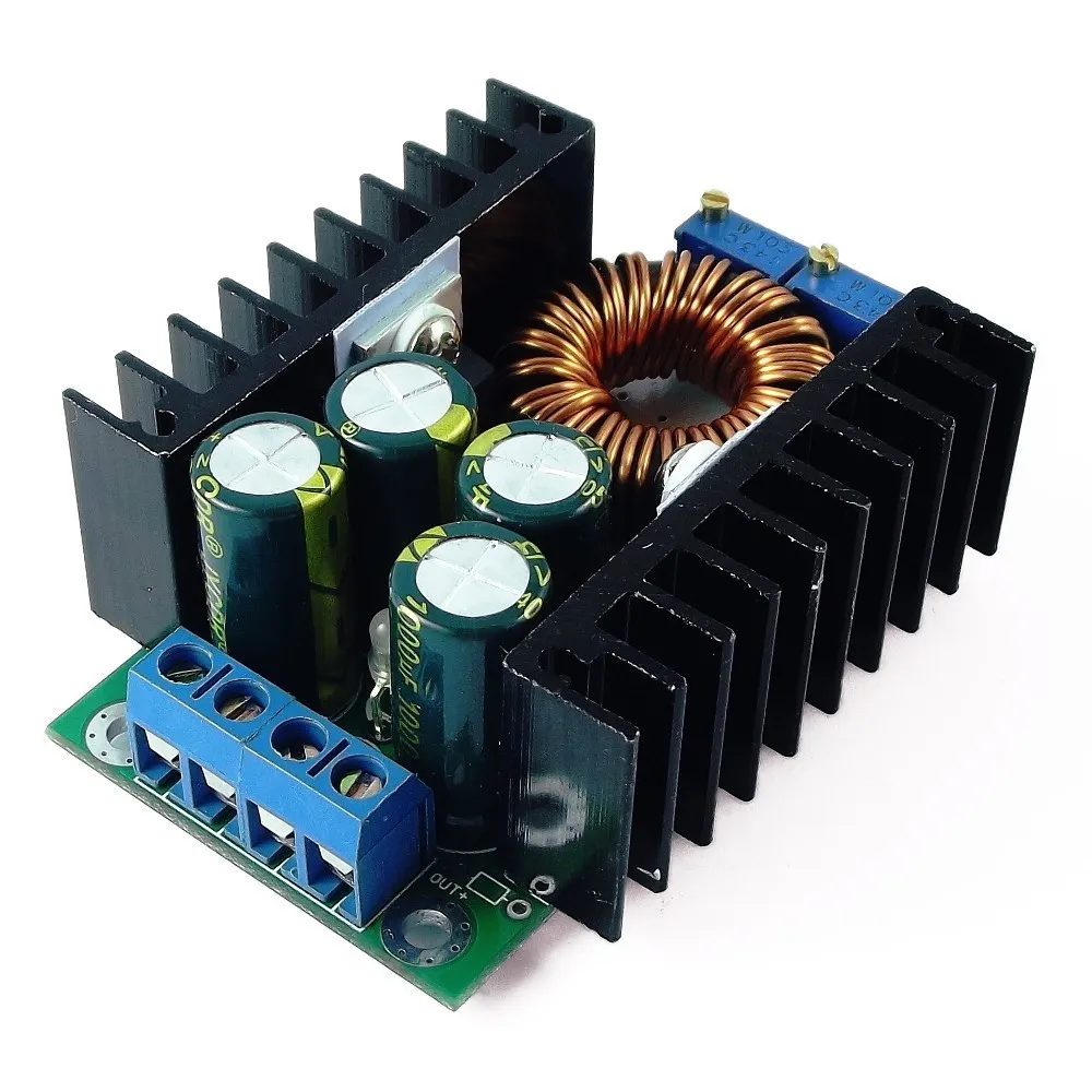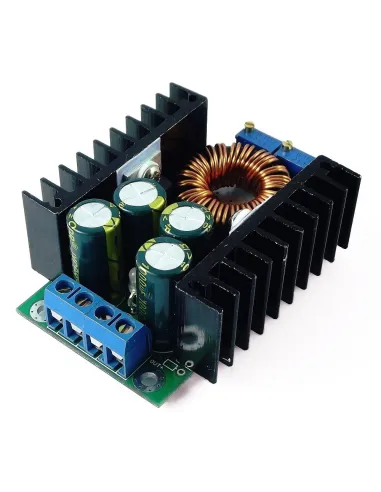 Este módulo de potencia se encarga de entregar un nivel de tensión a la salida inferior al nivel de tensión que se presenta a la entrada, funcionamiento típico de un reductor de voltaje, más conocido como Tipo “Buck”, posee un bajo nivel de tensión de rizado. Éste conversor se caracteriza por su nivel de potencia a la salida, para este es de 300W con un elevado valor de corriente de 9A, así pues, cuando se maneja un nivel de corriente tan alto, el disipador puede llegar a presentar calentamiento, por lo que se recomienda no llevar el conversor a este punto. Ésta board suele ser usada para el abastecimiento de baterías, transformadores de potencia, fuentes de alimentación regulables.