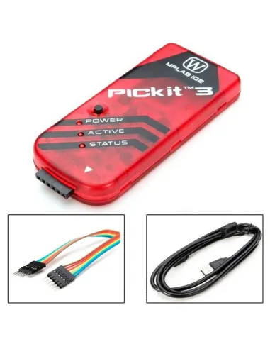 El PICKit 3 es la herramienta de depuración y programación más sencilla y de menor coste de Microchip. Esta totalmente soportado por el MPLAB IDE, y tiene una sencilla conexión USB Full Speed con el ordenador que no solo permite programar y depurar sino también hacer update del firmware interno del PICKIT3.