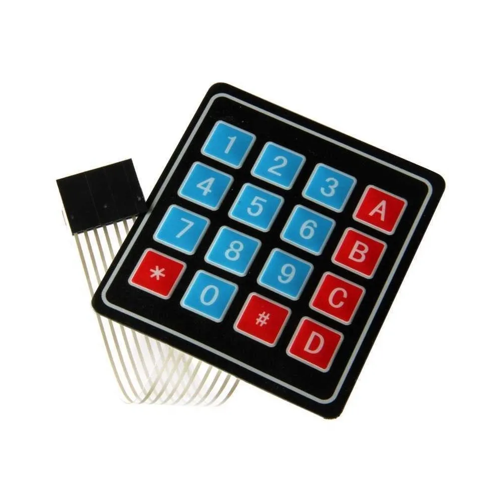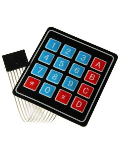 Teclado de Membrana con Adhesivo superficial de 4x4. Este teclado de facil instalacion permite una multitud de usos con una adecuada electronica de control. Su simplicidad y durabilidad lo convierten en la mejor opcion calidad/precio. Ideal para proyectos con Arduino, PIC, AVR, ARM.
