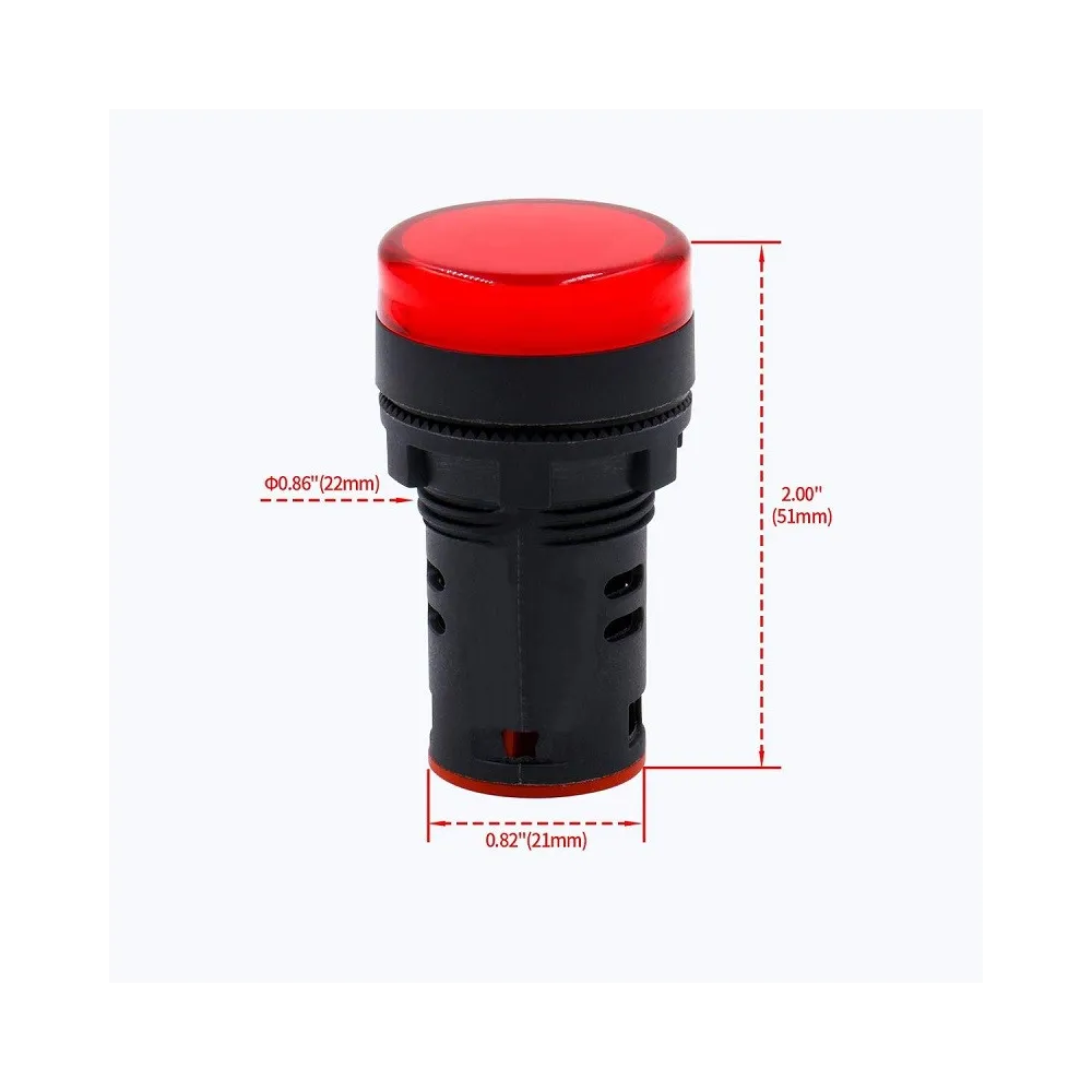 Dimensiones: Base 22mm, alto  52mm (39+13), luz piloto 29mm