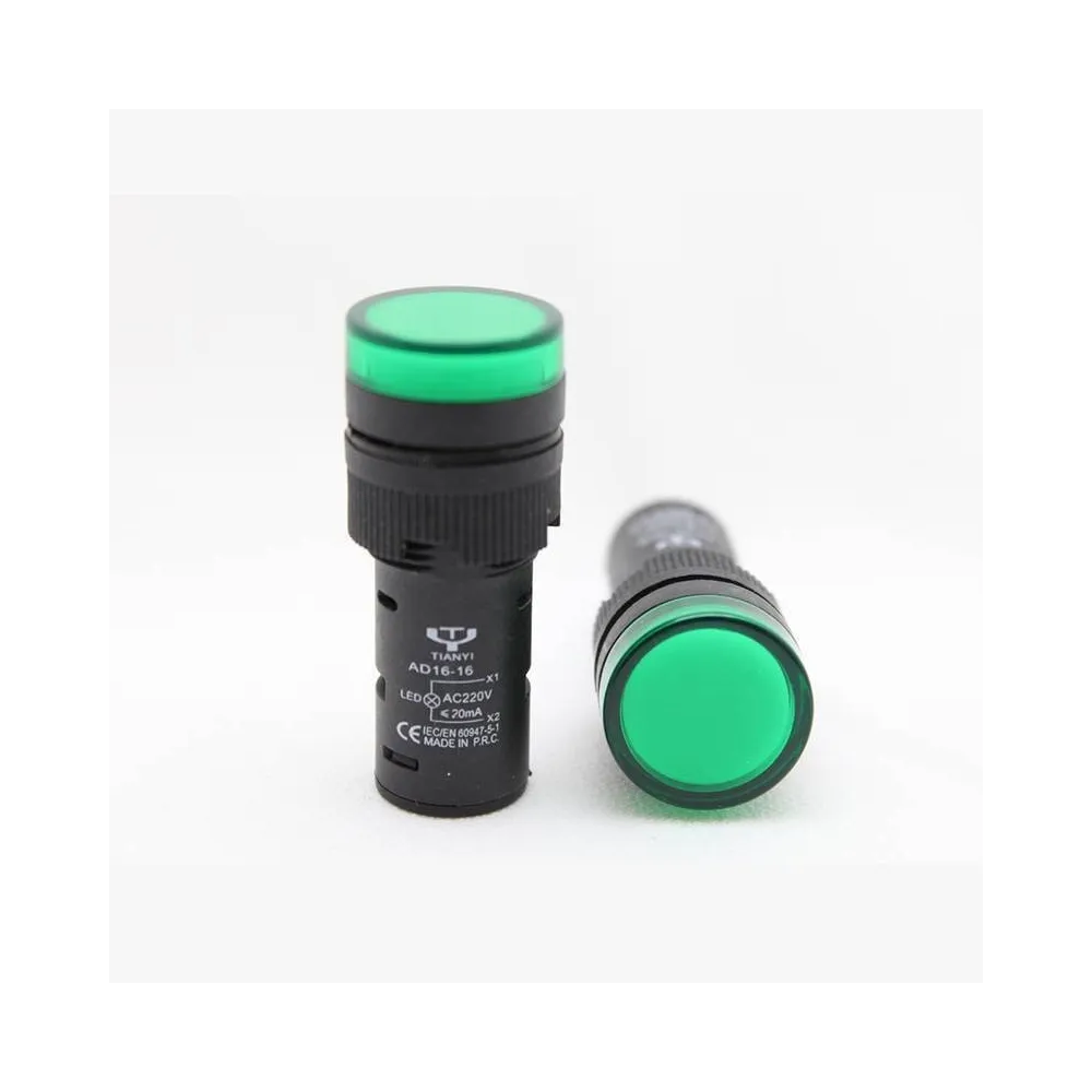 Indicador Led, Luz Piloto 16mm 110V-220V, Verde