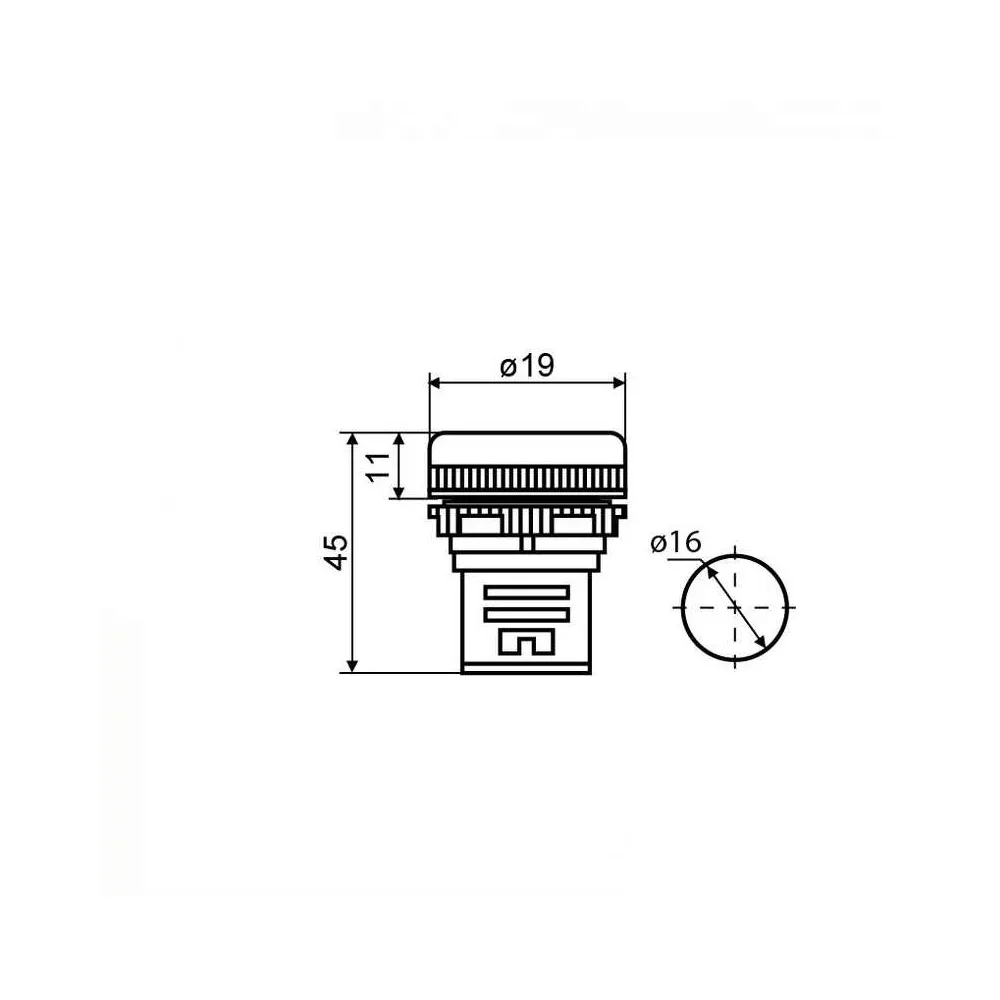 Dimensiones: Base 16mm, alto  45mm (35+10), luz piloto 19mm