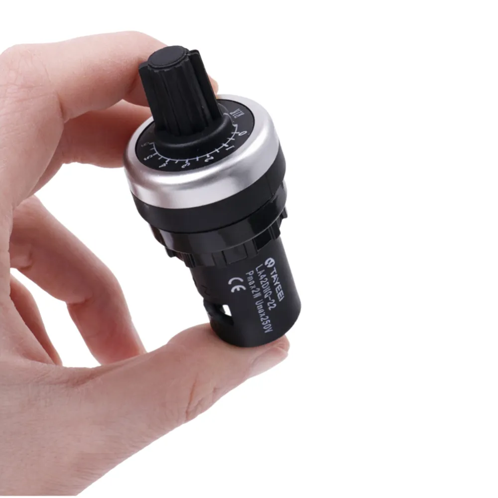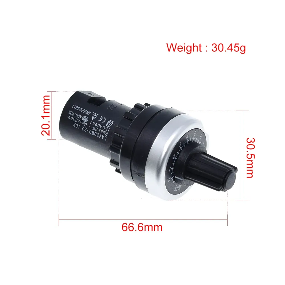 El LA42DWQ-22 es un potenciómetro de grado industrial diseñado específicamente para ser montado en paneles de control y tableros de mando. Su función principal es permitir el ajuste manual de parámetros eléctricos.