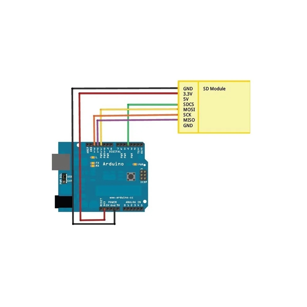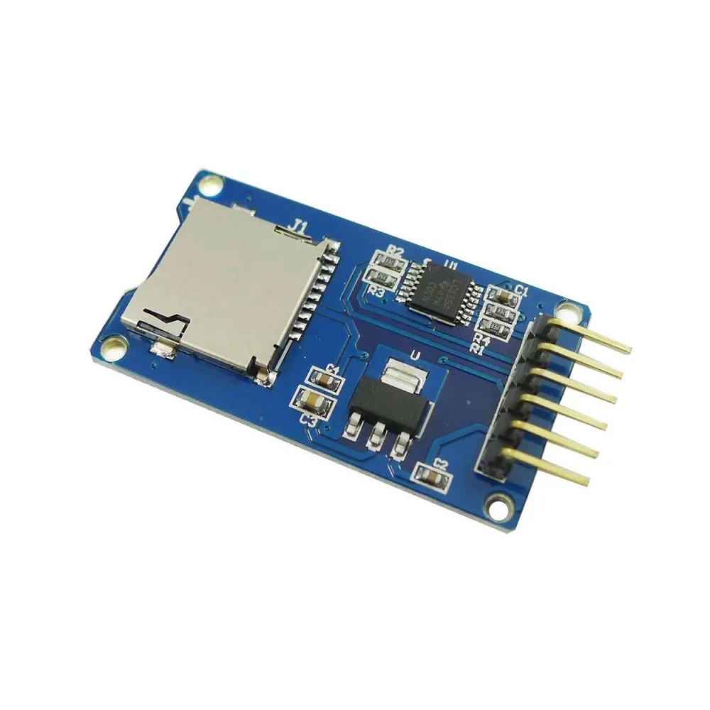 Con el módulo microSD usted prodrá almacenar datos de manera segura tantas veces quiera, o simplemente para almacenar los datos de los sensores y/o servos, motores, etc para su control. Soporta tarjetas SDHC (tarjetas de alta velocidad). Interface de comunicación SPI , permite alimentación a 3,3v como a 5v.
