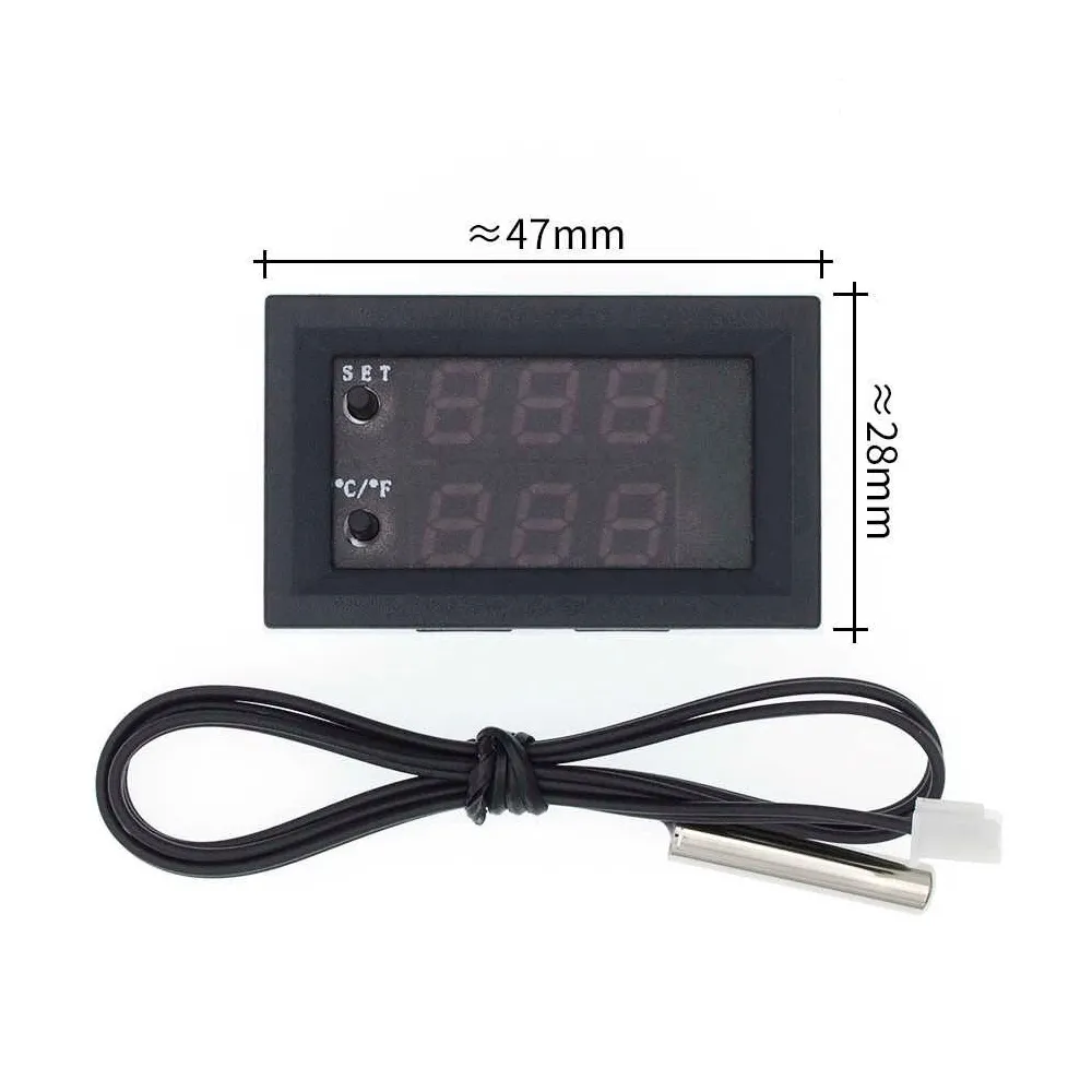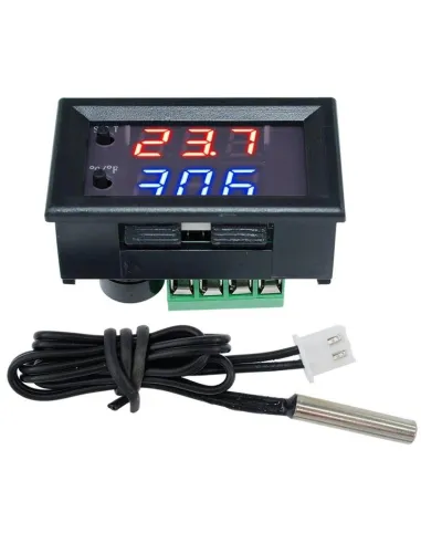 El termostato W1209WK permite sensar la temperatura mediante un termistor NTC de 10K Ohm que cuenta con un recubrimiento especial para que funcione incluso dentro del agua