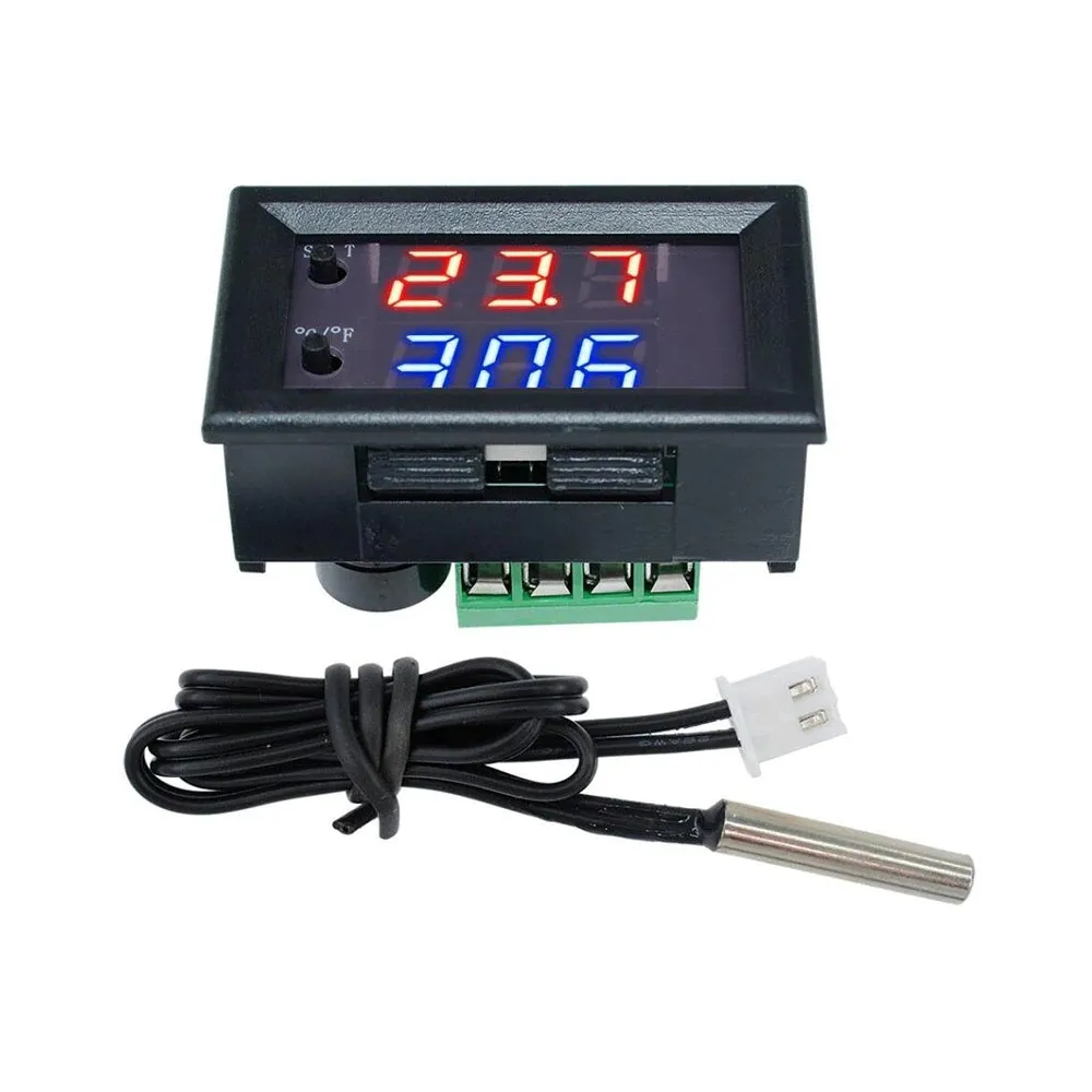 El termostato W1209WK permite sensar la temperatura mediante un termistor NTC de 10K Ohm que cuenta con un recubrimiento especial para que funcione incluso dentro del agua. Este módulo cuenta con un relé que controla la potencia de la carga. Apropiado para el uso en incubadoras.