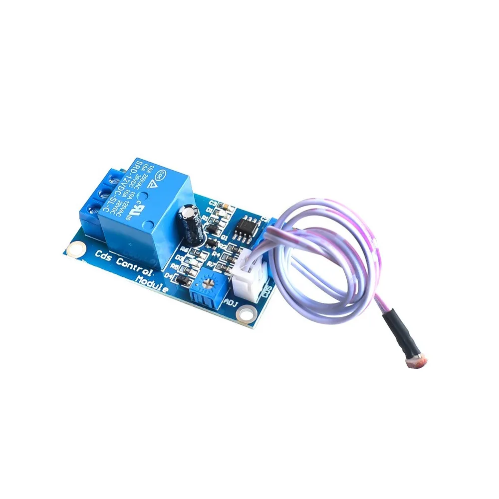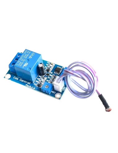 Modulo Rele 1 Canal con fotocelda, Bobina del rele de 12v, incorpora 2 led, uno de encendido del modulo y otro de activacion, mediante el Trimmer puedes darle la sensibilidad al modulo para que se active a determinada intencidad de luz