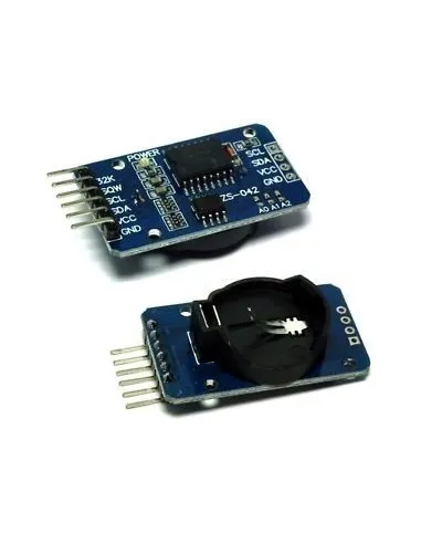 Este módulo está basado en el circuito integrado DS3231, el cual es un reloj en tiempo real sumamente exacto y compensado en temperatura (TCXO). Requiere para su funcionamiento una pila de litio (incluida), la cual durará aproximadamente 8 años, siempre que la interfaz I2C sea alimentado con 5V.