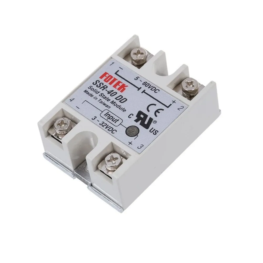 Relé de estado Solido SSR-40DA: Relé de estado sólido de fácil control, puede ser usado con arduino o cualquier microcontrolador similar con gran facilidad, la cubierta protectora de plástico lo convierte en un módulo de relé seguro y fiable para grandes cargas.