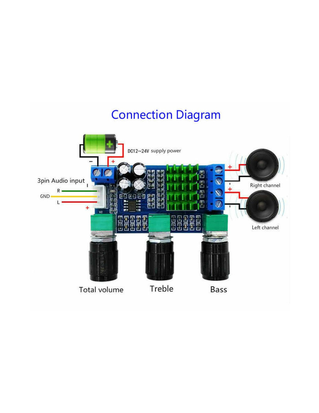 Amplificador Estéreo  2x80W 12-24V, con bajo, brillo y volumen TPA3116D2 XH-M567