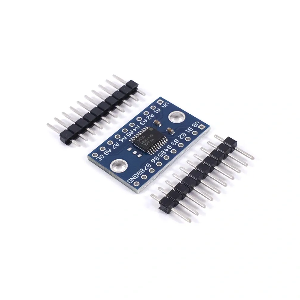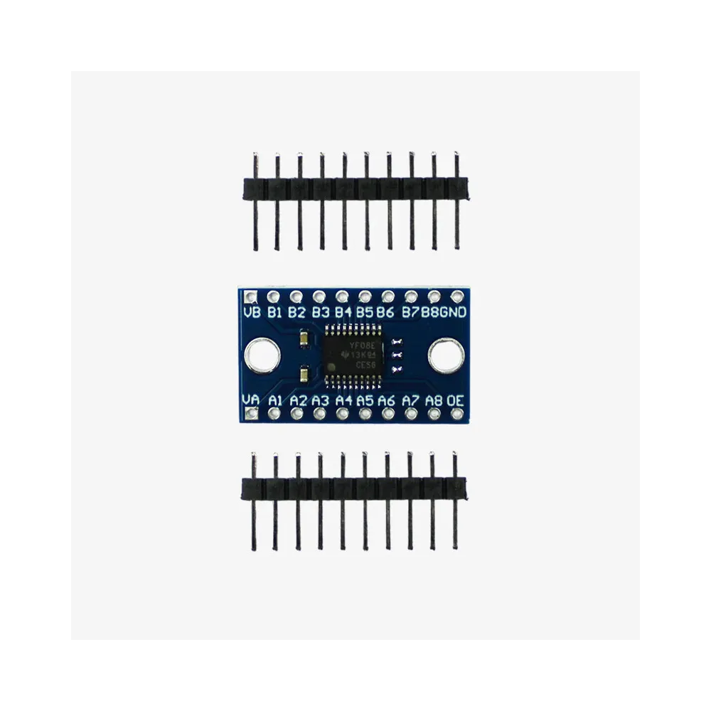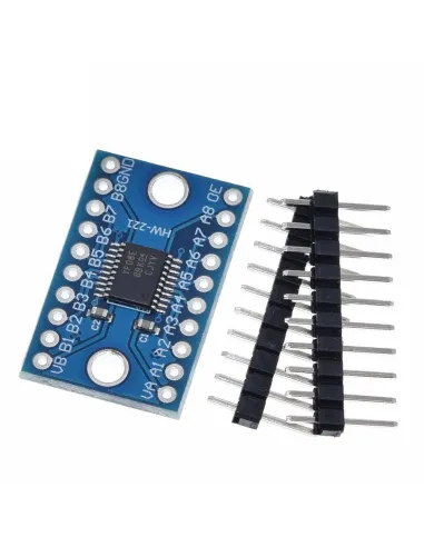 Los pines del módulo tienen un espaciado diseñado para ser montado sobre un protoboard, permitiendo una rápida instalación. La placa necesita ser alimentada por los dos voltajes a convertir y sólo funciona con señales digitales (niveles altos y bajos).NO funciona con señales analógicas. No es necesario configurar cada canal como entrada o salida. Cuando el pin Output Enable(OE) está conectado a GND, las salidas del conversor serán del tipo Alta Impedancia (Hi-Z), esto es usado en comunicaciones de tipo I2C, si es otro tipo de comunicación se debe conectar a VccA y adicionalmente una resistencia pulldown. Sólo funciona con señales lógicas digitales (niveles altos y bajos)