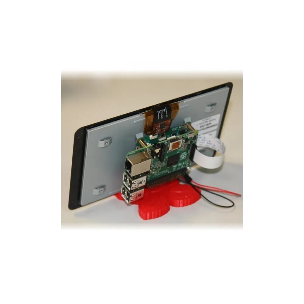 Este monitor de pantalla táctil de 7 pulgadas para Raspberry Pi brinda a los usuarios la capacidad de crear proyectos integrados todo en uno, como tabletas, sistemas de información y entretenimiento y proyectos integrados. La pantalla de 800 x 480 se conecta a través de una placa adaptadora que maneja la conversión de energía y señal. Solo se requieren dos conexiones al Pi; alimentación del puerto GPIO de Pi y un cable plano que se conecta al puerto DSI presente en todas las Raspberry Pis (excepto Raspberry Pi Zero y Zero W). Los controladores de pantalla táctil con soporte para toque con 10 dedos y un teclado en pantalla se integrarán en el último sistema operativo Raspberry Pi para una funcionalidad completa sin un teclado o mouse físicos.