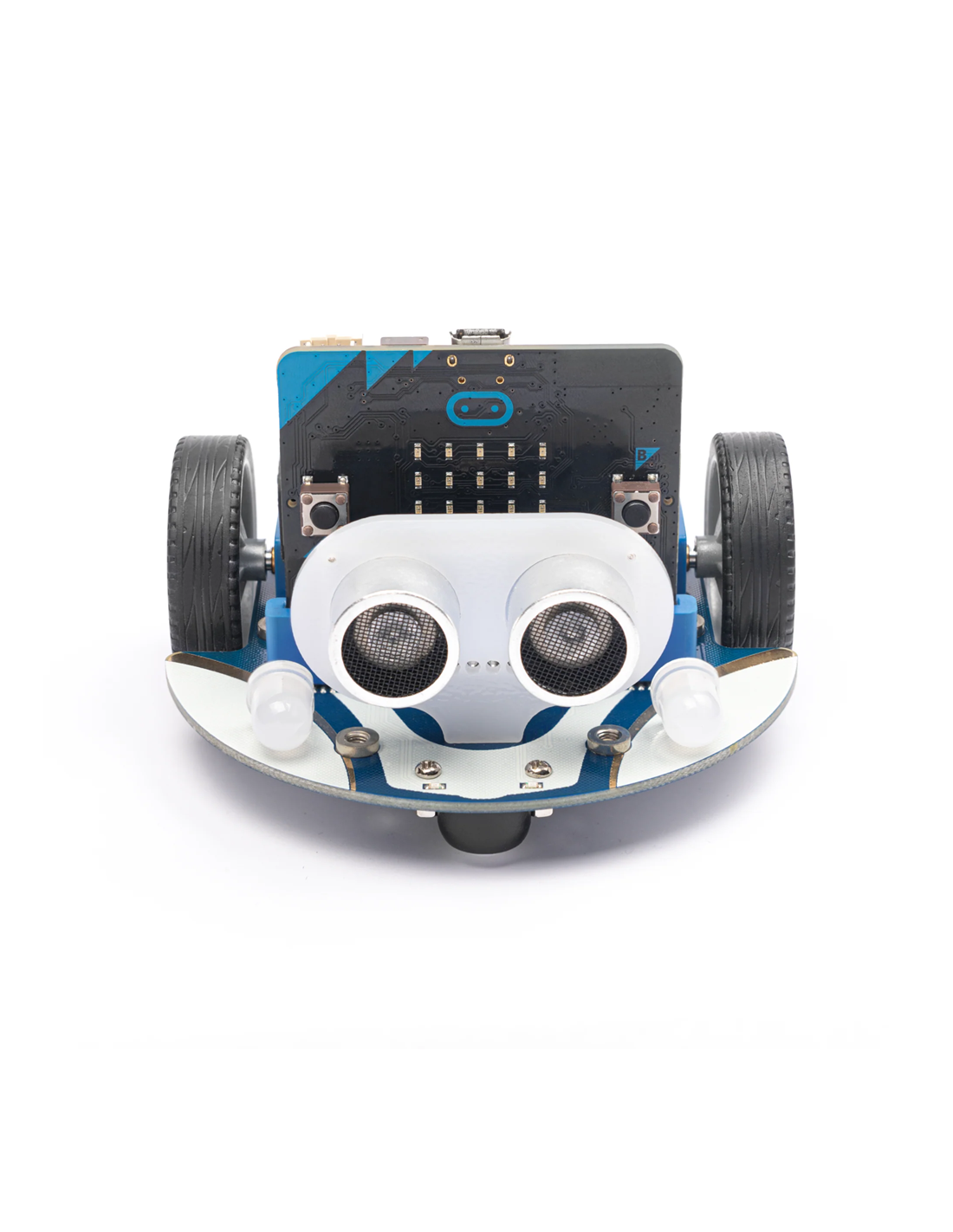 A diferencia de otros kits, el Cutebot viene casi listo para usar; solo conecta tu micro:bit y empieza a programar funciones de seguimiento de líneas, evasión de obstáculos y control remoto.