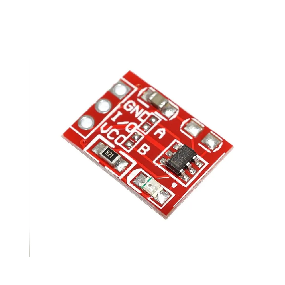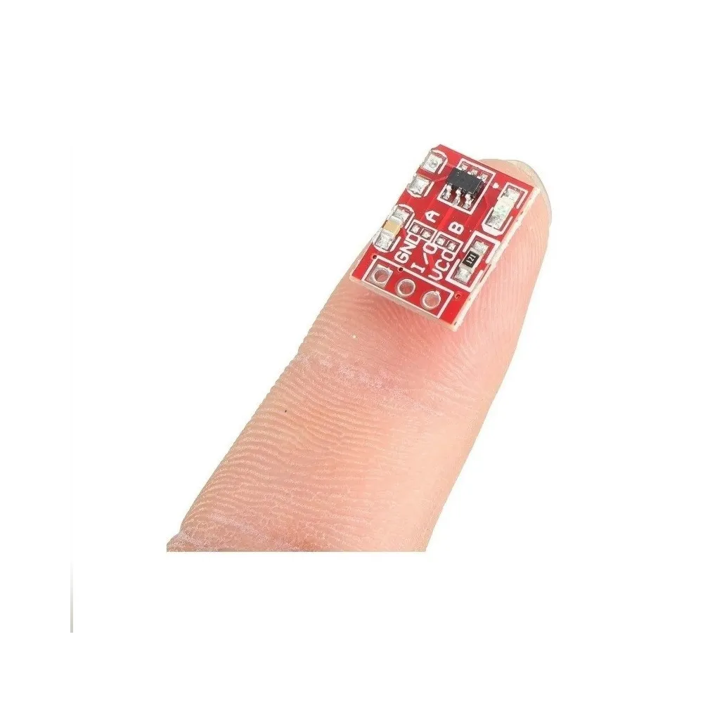 Tarjeta que implementa un IC detector tipo Touch para botón táctil. Los conmutadores tipo touch han sido diseñados para reemplazar los botones mecánicos y permiten múltiples aplicaciones tanto en aplicaciones de DC como DC.