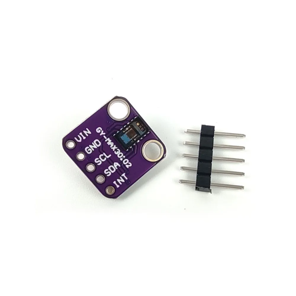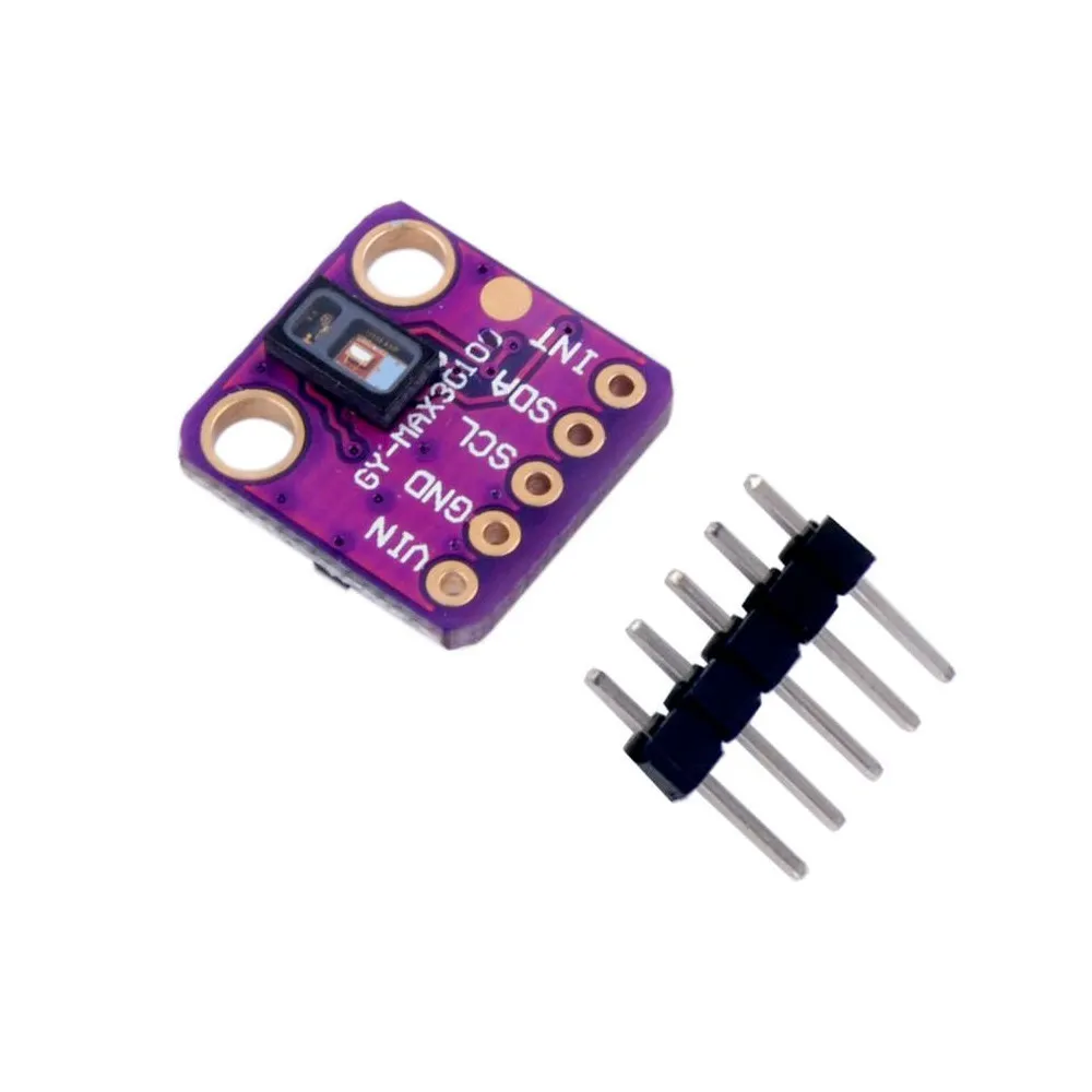 El MAX30102 es un sensor avanzado de bioseñales diseñado para la medición de frecuencia cardíaca y saturación de oxígeno en la sangre (SpO₂). Incorpora un sistema integrado con LEDs rojos e infrarrojos, fotodetector y óptica de alta precisión en un solo módulo compacto, lo que facilita su uso en proyectos de wearables, dispositivos médicos portátiles y aplicaciones de monitoreo de salud.