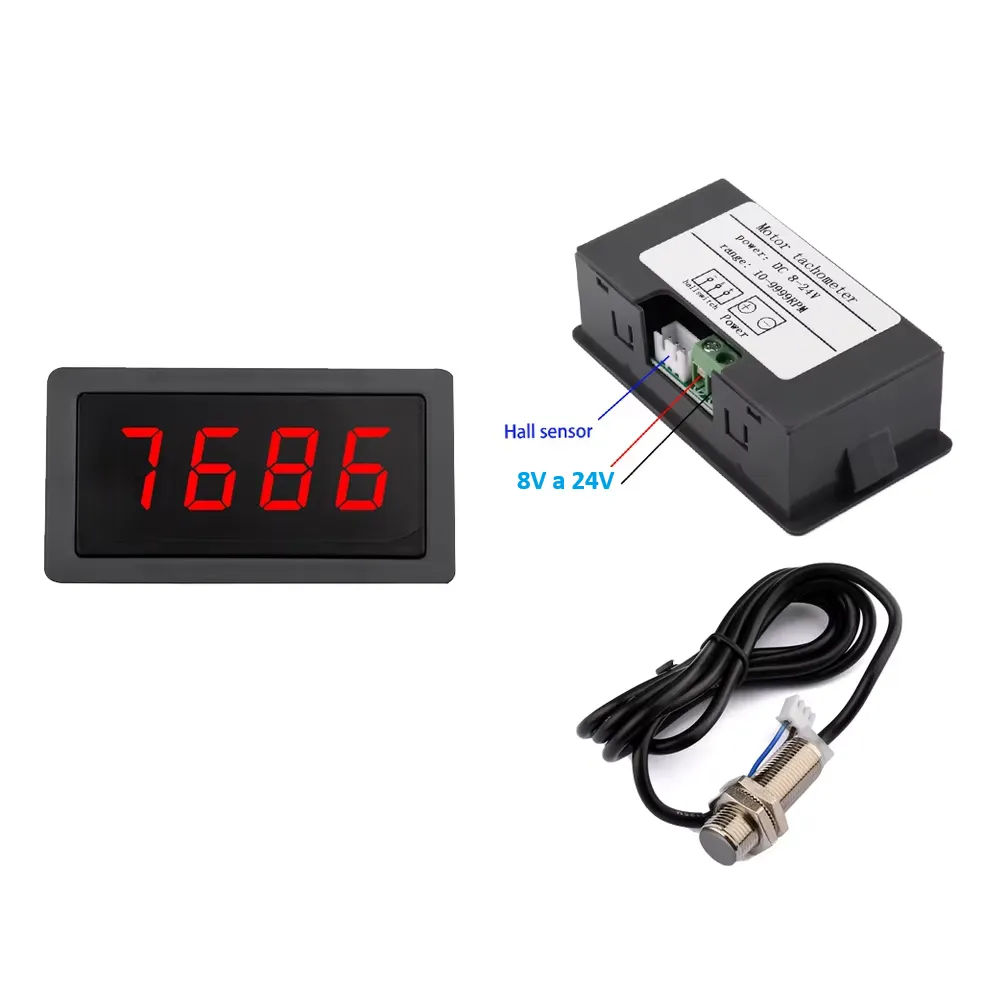 Tacómetro Digital por efecto hall. 10-9999RPM, 8V a 24V