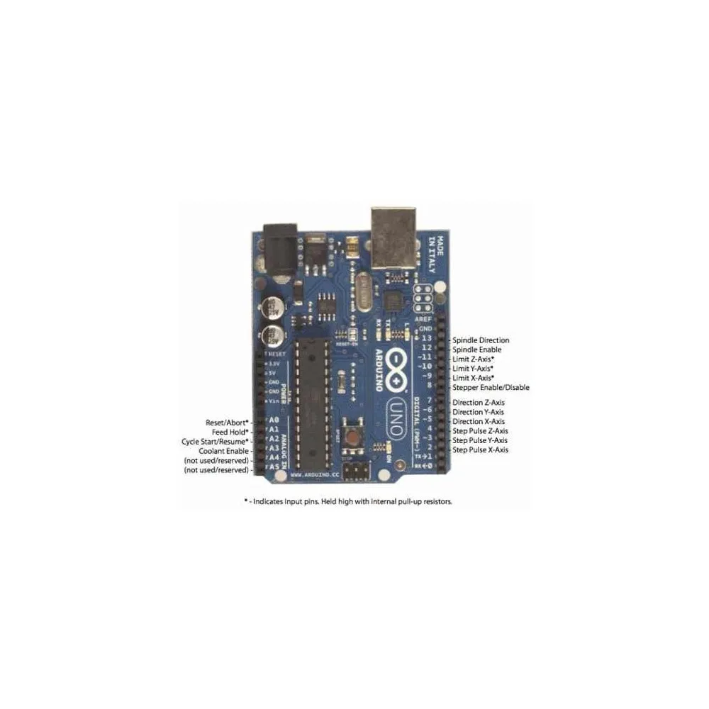 - 4 ejes de soporte X, Y, Z, A (el eje A, puede duplicar los ejes X, Y, Z o por defecto, hacer un cuarto eje completo con firmware personalizado utilizando los pines D12 y D13)