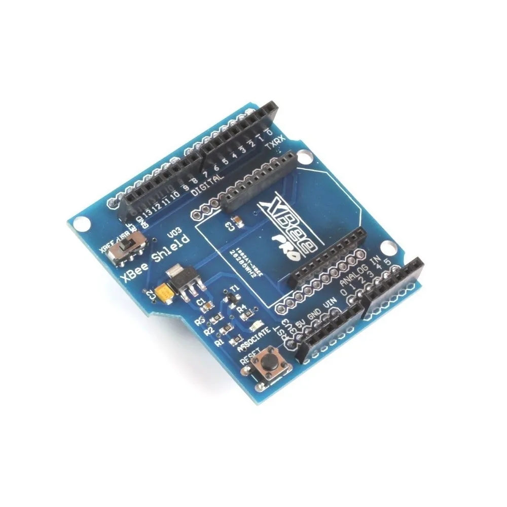 Shield que permite darle al Arduino conectividad inalámbica a través del protocolo zigbee. Funciona con todos los módulos xbee y es compatible con el Arduino Uno, Duemilanove, Mega, Mega adk y Leonardo.