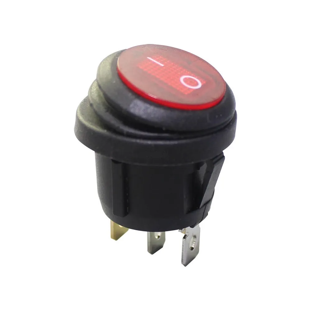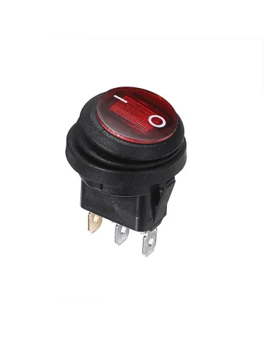 Switch Balancin waterproof Redondo 3 Pin Rojo 10A, 20mm con Piloto