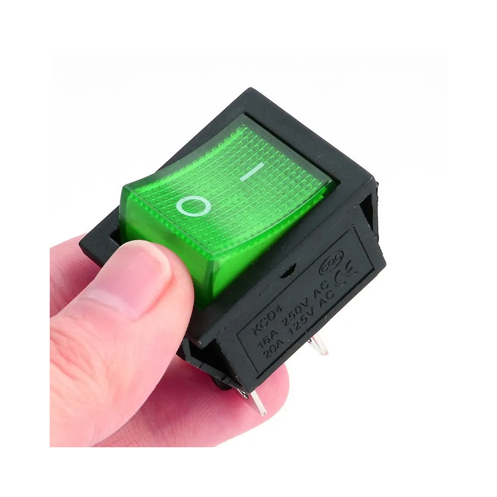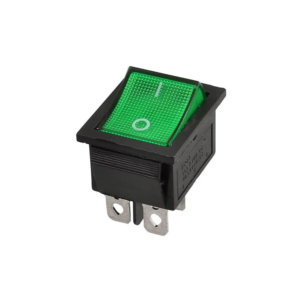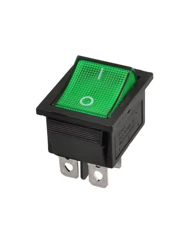 Switch Balancín 4 Pin 2 Contactos Verde 20A, 31x25mm